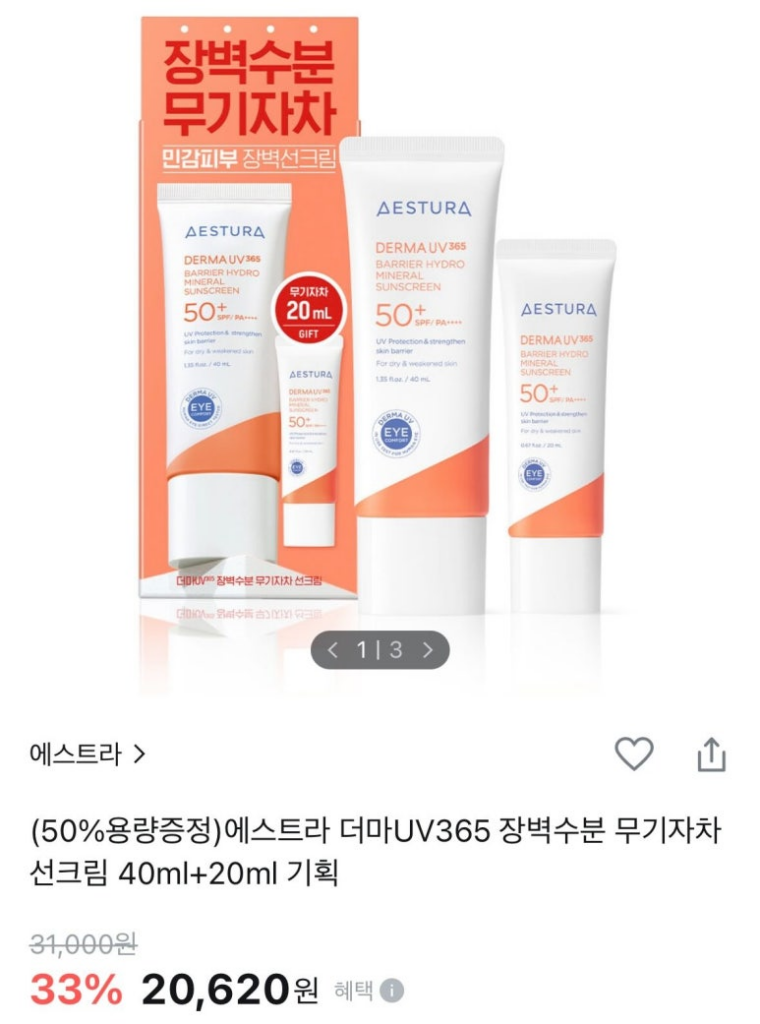 개인적으로 유기자차는 연속으로 사용하면 접촉피부염이 생기기 때문에, 데일리로는 무기자차를 선호합니다.