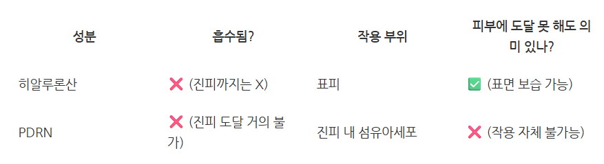 “히알루론산도 분자량이 커서 피부에 안 들어간다면서, 그럼 PDRN이 흡수 안 되는 것도 괜찮은 거 아닌가요?”